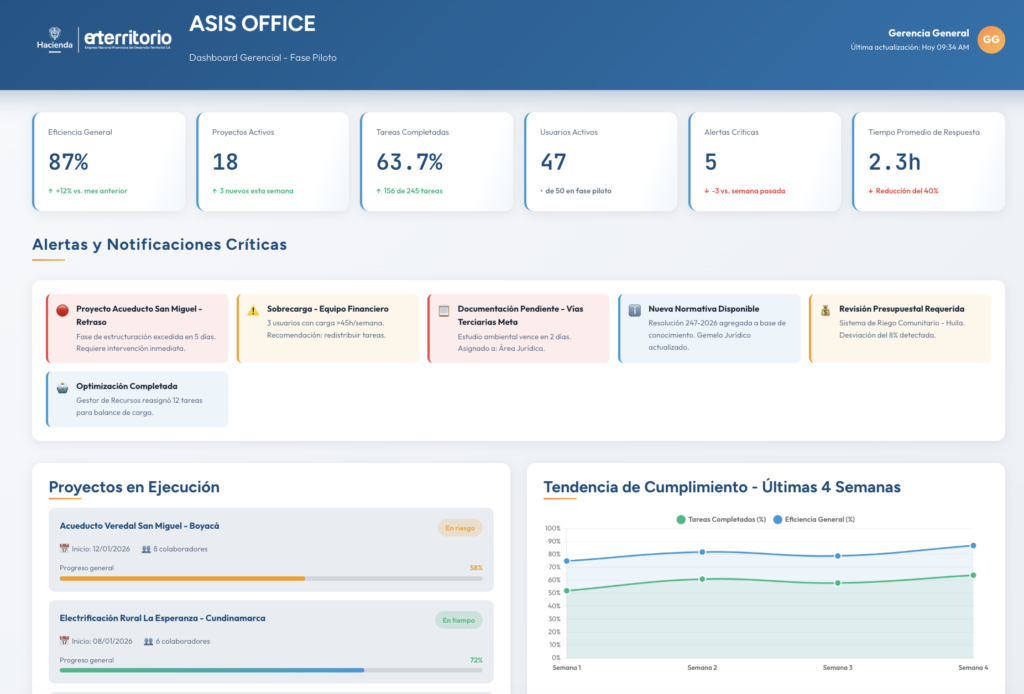 Digitalizamos flujos de trabajo complejos mediante dashboards que centralizan licitaciones y analizan perfiles en segundos.